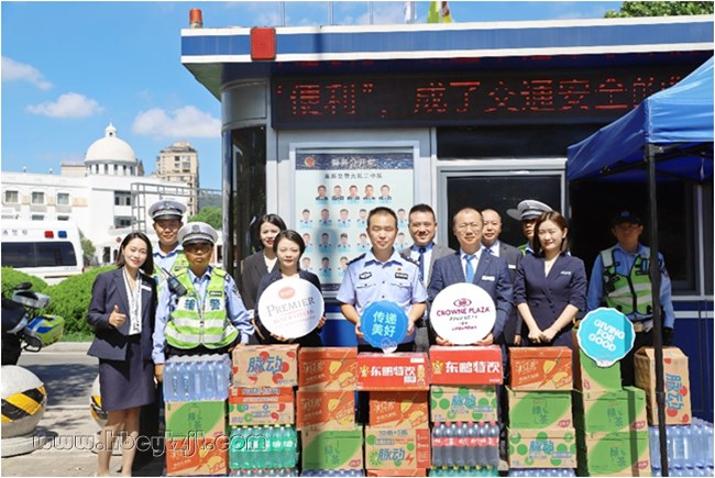 合肥皇冠假日酒店總經理戴慶豐先生表示:“交警同志們頂烈日、戰酷暑,守護市民出行安全,是當之無愧的城市英雄。我們特意準備這些飲品,希望能為大家及時補充水分、緩解暑氣,以此表達誠摯的敬意。”